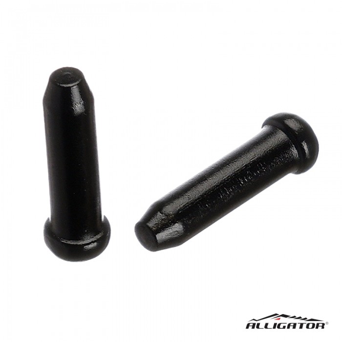 Końcówka cięgna marki ALLIGATOR. Materiał: Aluminium. Średnica wewnętrzna 2.3mm. Długość 12mm. Dedykowane do cięgien hamulca. Opakowanie 50szt.