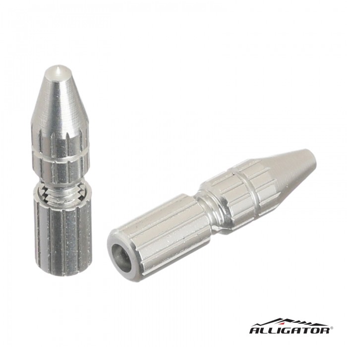 Końcówka cięgna marki ALLIGATOR. Wielokrotnego użytku. Materiał: Aluminium. Średnica wewnętrzna 1.6mm. Dedykowane do cięgien przerzutki. Opakowanie 2szt.