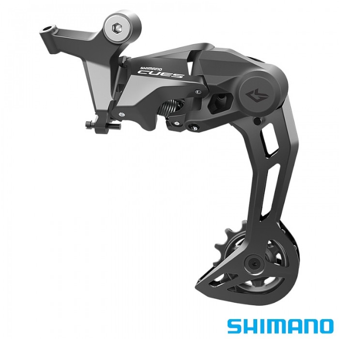 Przerzutka tylna SHIMANO CUES. Przełożenia: 10 (LinkGlide). Mocowanie: Śruba. Technologia SHADOW. Pojemność: 44T. Maks.dyferencja przód: 16T. Do kaset: min.11T / max.39T. Do E-Bike'ów.