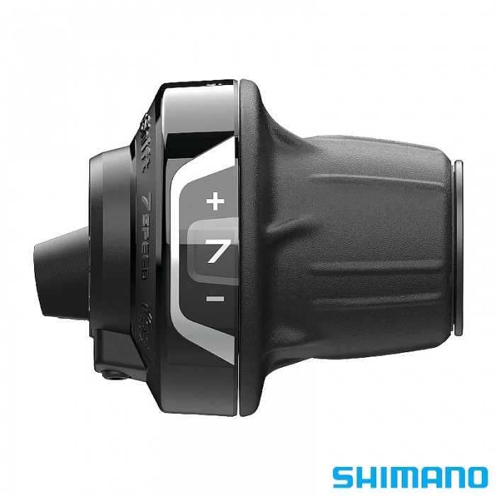 Manetka marki SHIMANO. Prawa. Typ: Revo Shift. Przełożenia: 7. INDEX.