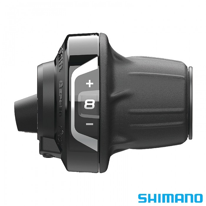 Manetka marki SHIMANO. Prawa. Typ: Revo Shift. Przełożenia: 8. INDEX.