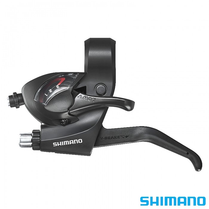 Manetka SHIMANO. LEWA. Typ: EZ Fire plus. Przełożenia: 3. Zespolona z dźwignią hamulca V-Brake (mech.DB).