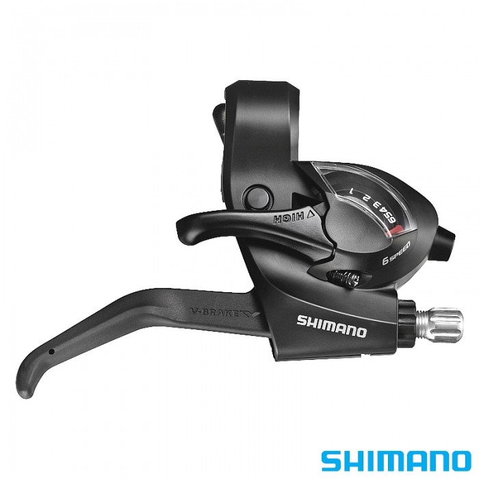 Manetka SHIMANO. Prawa. Typ: EZ Fire plus. Przełożenia: 6. Zespolona z dźwignią hamulca V-Brake (mech.DB).