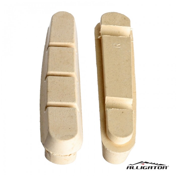Okładziny marki ALLIGATOR do klocków kartydżowych. Przeznaczone do obręczy aluminiowych. Do szosowych szczęk typy Caliper. Długość 55mm. WAGA: ok.15gram
