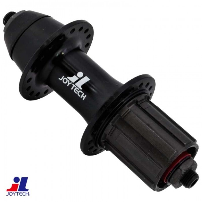 Piasta tylna JOYTECH. Aluminiowa. Przeznaczona do rowerów szosowych. Oś: CrMo M10x140mm na szybkozamykacz. Szerokość: 130mm. Kulki TSE. Główka: Stal, kompatybilna z Shimano 8/9/10/11s. Waga: 405gram.