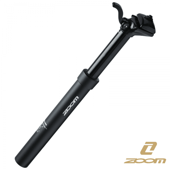 Wspornik siodła marki ZOOM. Dropper 100mm z dzwignią pod siodłem. Materiał: Aluminium 6061. Średnica 30.9mm. Długość całkowita 375mm. Offset 18mm.