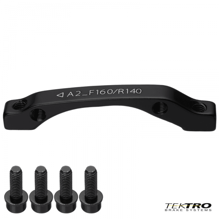 Adapter marki TEKTRO do szczęk hamulca tarczowego. Materiał: Aluminium. Kowersja: przedni widelec IS / szczęka Post Mount 160mm; rama IS / szczęka Post Mount 140mm.