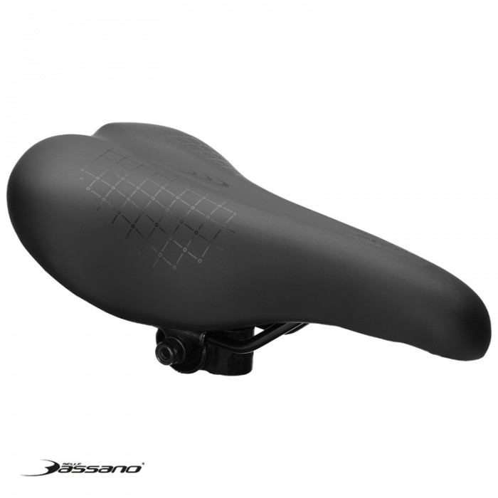 Siodło marki SELLE BASSANO. Długość 275mm. Szerokość 160mm. Szyny stalowe, okrągłe. W komplecie jarzemko.
