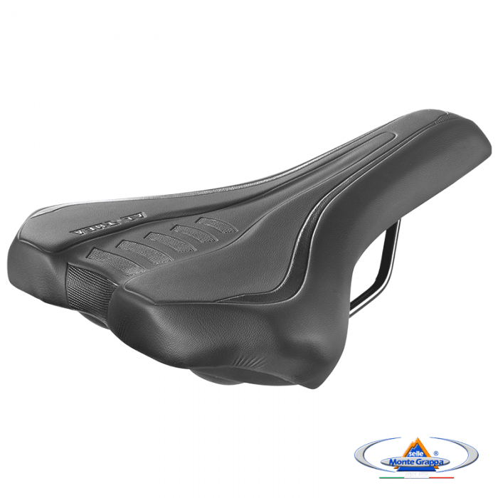 Siodło marki SELLE MONTEGRAPPA. Model ALTHEA. Długość 265mm. Szerokość 195mm. Szyny stalowe, okrągłe. Wypełnienie: SMG Memory Foam. Pokrycie: skóra syntetyczna. Skorupa: PPE. Waga ok. 365gram