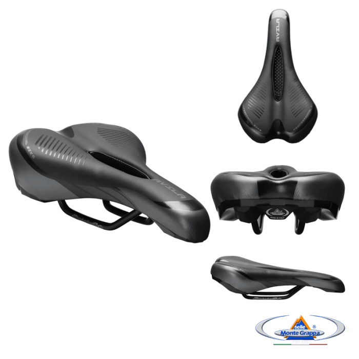 Siodło marki SELLE MONTEGRAPPA. Model AVILA. Długość 275mm. Szerokość 148mm. Szyny stalowe, okrągłe. Wypełnienie: SMG Memory Foam. Pokrycie: skóra syntetyczna. Skorupa: PPE. Waga ok. 320gram