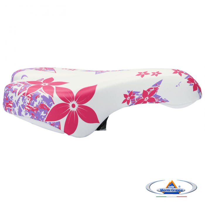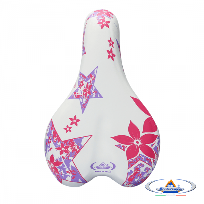 Siodło marki SELLE MONTEGRAPPA. Model OK GO. Do rowerów dziecięcych 16-20". Długość 220mm. Szerokość 145mm. Zintegrowane jarzemko. Wypełnienie: SMG Memory Foam. Pokrycie: skóra syntetyczna. Skorupa: PPE. Waga ok. 300gram